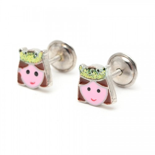 Pendiente en plata de ley, con rosca y motivo esmaltado