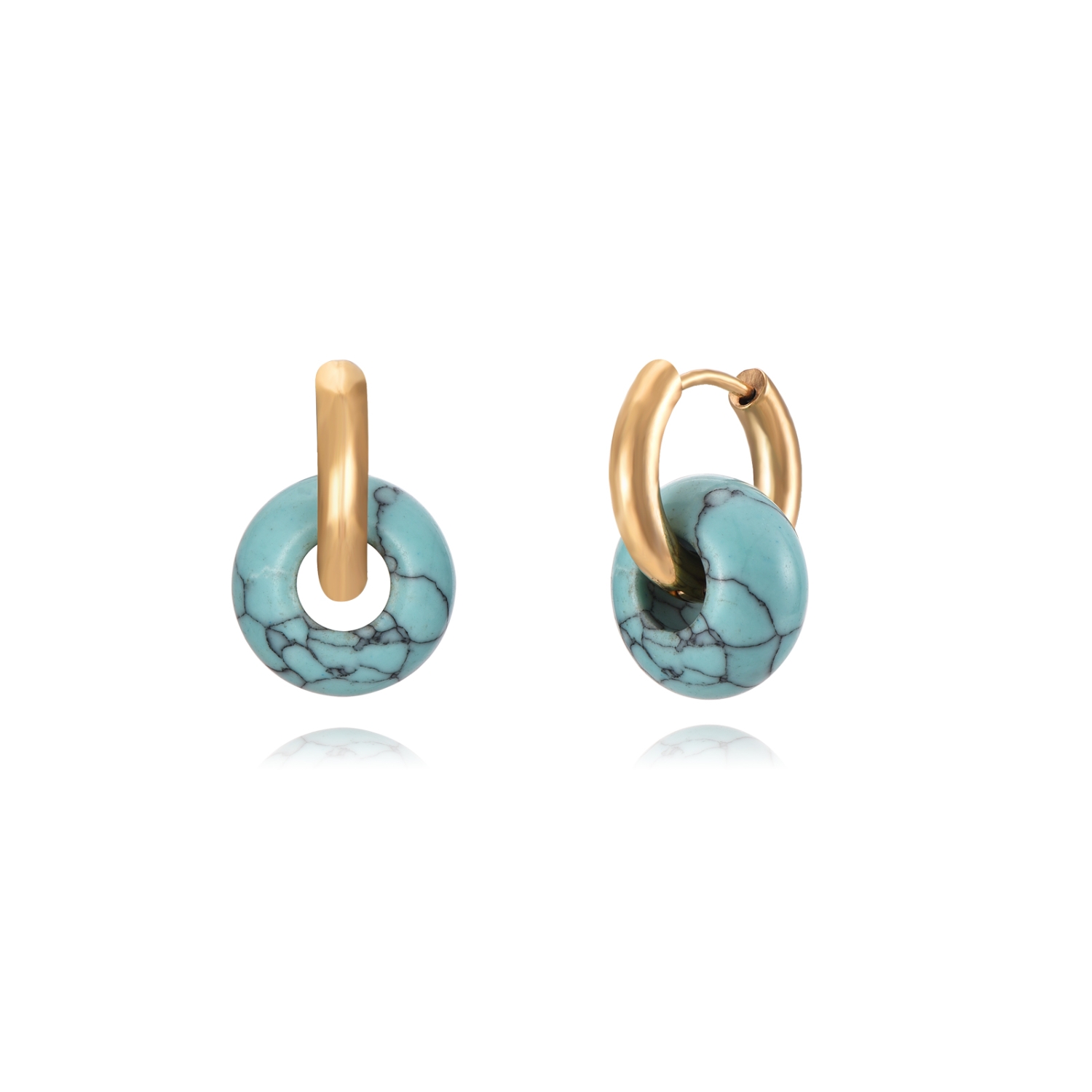 Par de pendientes aro acero con baño de oro de18k y donut de piedra natural