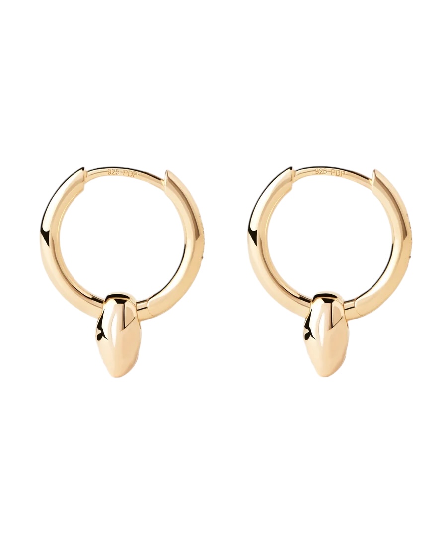 Mini aros de plata baña en oro adornados con un colgante de circonita con forma fluida