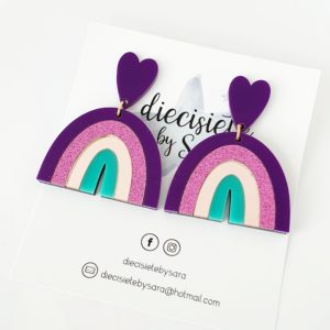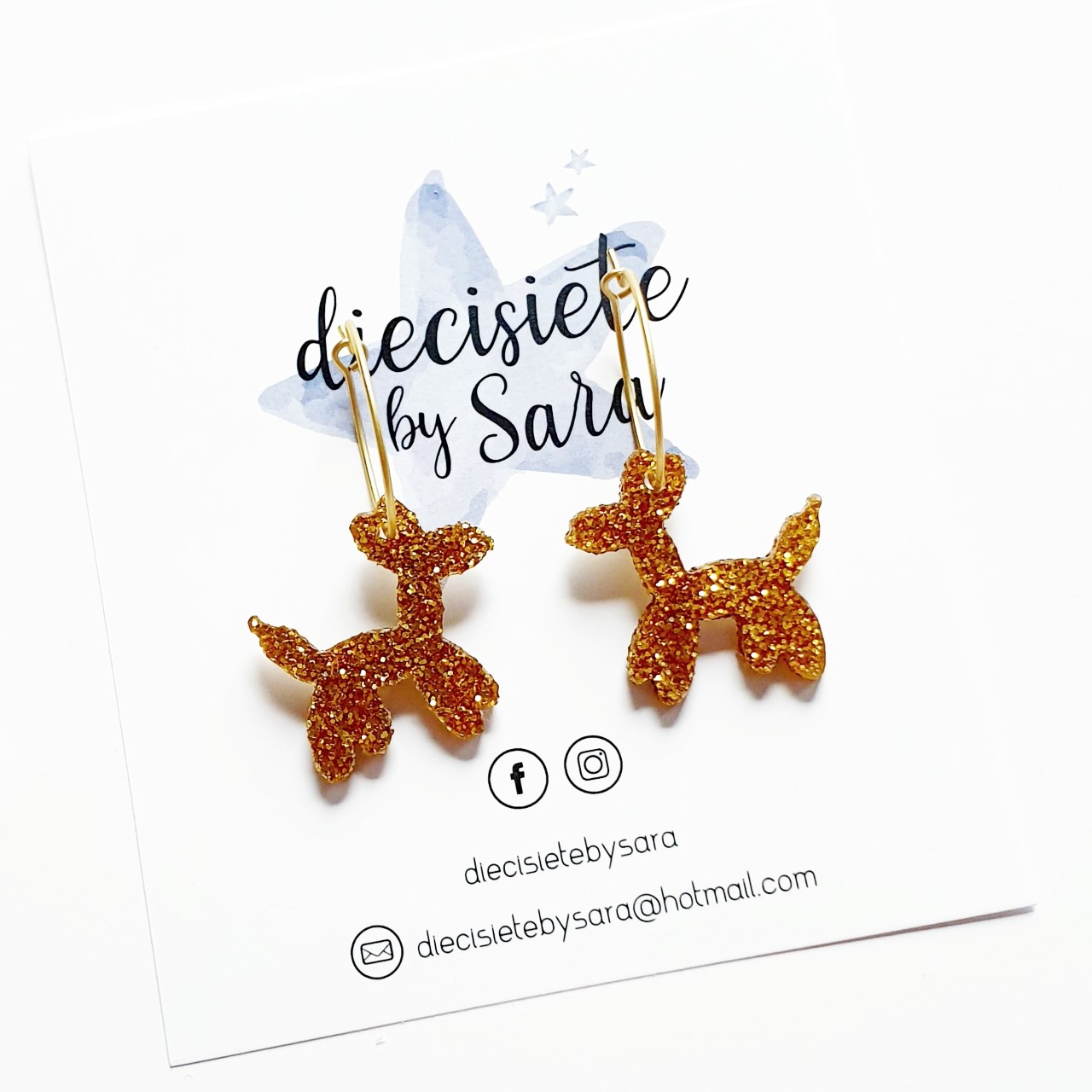 Pendientes con arito de 2 cm en latón con baño de oro y perro en dorado glitter