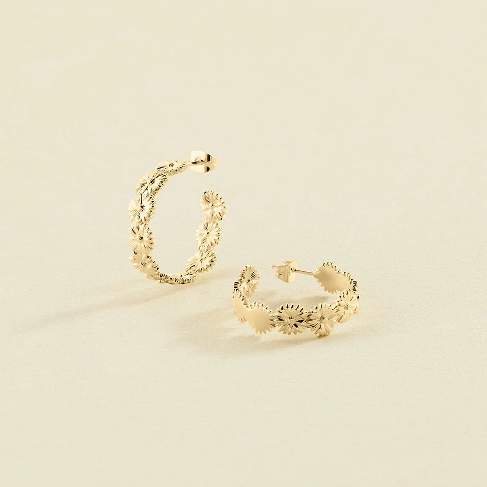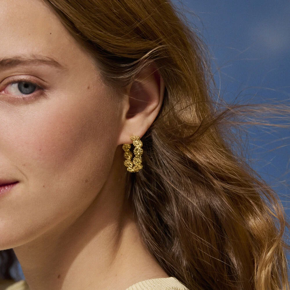 Criollas acabadas en oro en forma de margaritas. Una opción súper primaveral que querrás lucir a todas horas.