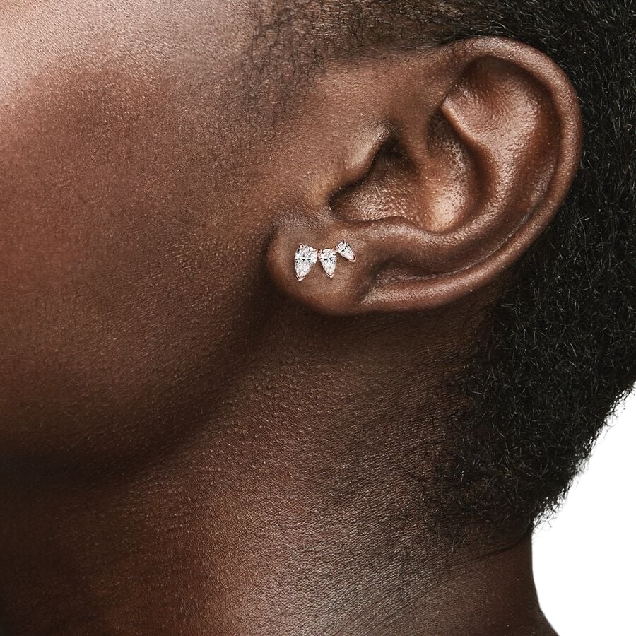 Triplica los brillos con los Pendientes de Botón Pera Brillante. Estos delicados pendientes con recubrimiento de oro rosa de 14k se presentan con tres gemas en forma de pera de diferentes tamaños. Engastadas en una fila curvada, de la más pequeña a la más grande, las gemas se conectan por el extremo más ancho, creando una silueta dinámica a lo largo de las puntas, cuya belleza se hace destacar mediante chatones en forma de V. Una novedosa reinterpretación de una gema con forma atemporal, estos pendientes son perfectos para ocasiones que requieren un tono elegante o bien, para darle a tu estilo un look más llamativo.