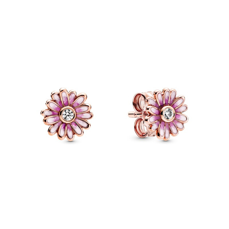 Pendientes de botón Pandora rose margaritas con circonitas cubicas transparentes y esmalte rosa y transparente