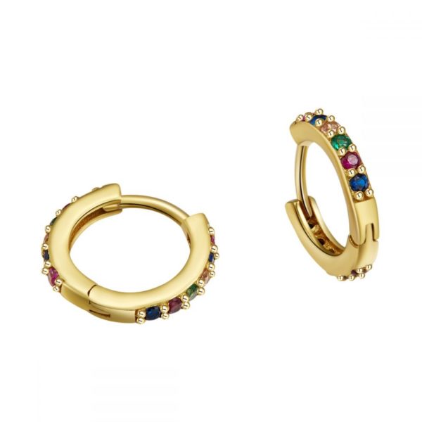 Pendientes en Plata de Ley Aro 10mm Circonitas Multicolor Gold