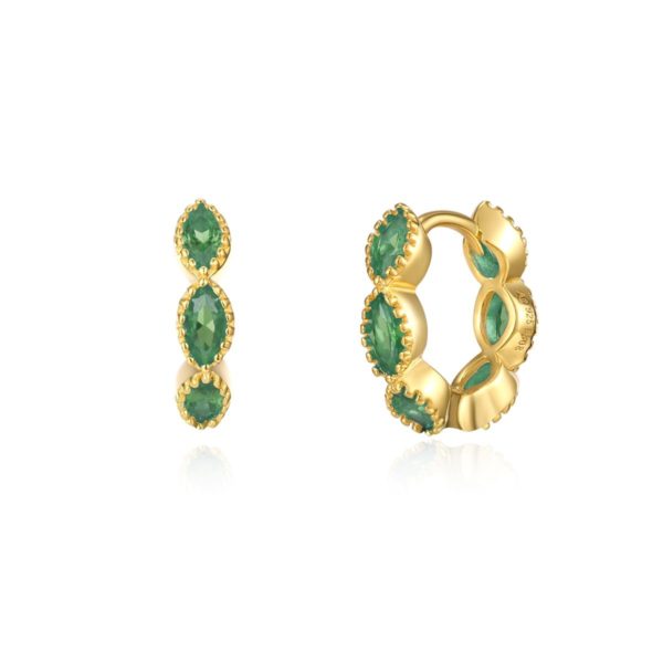 Pendientes en plata de primera ley con baño de oro de 18k y circonitas marquise color verde esmeralda