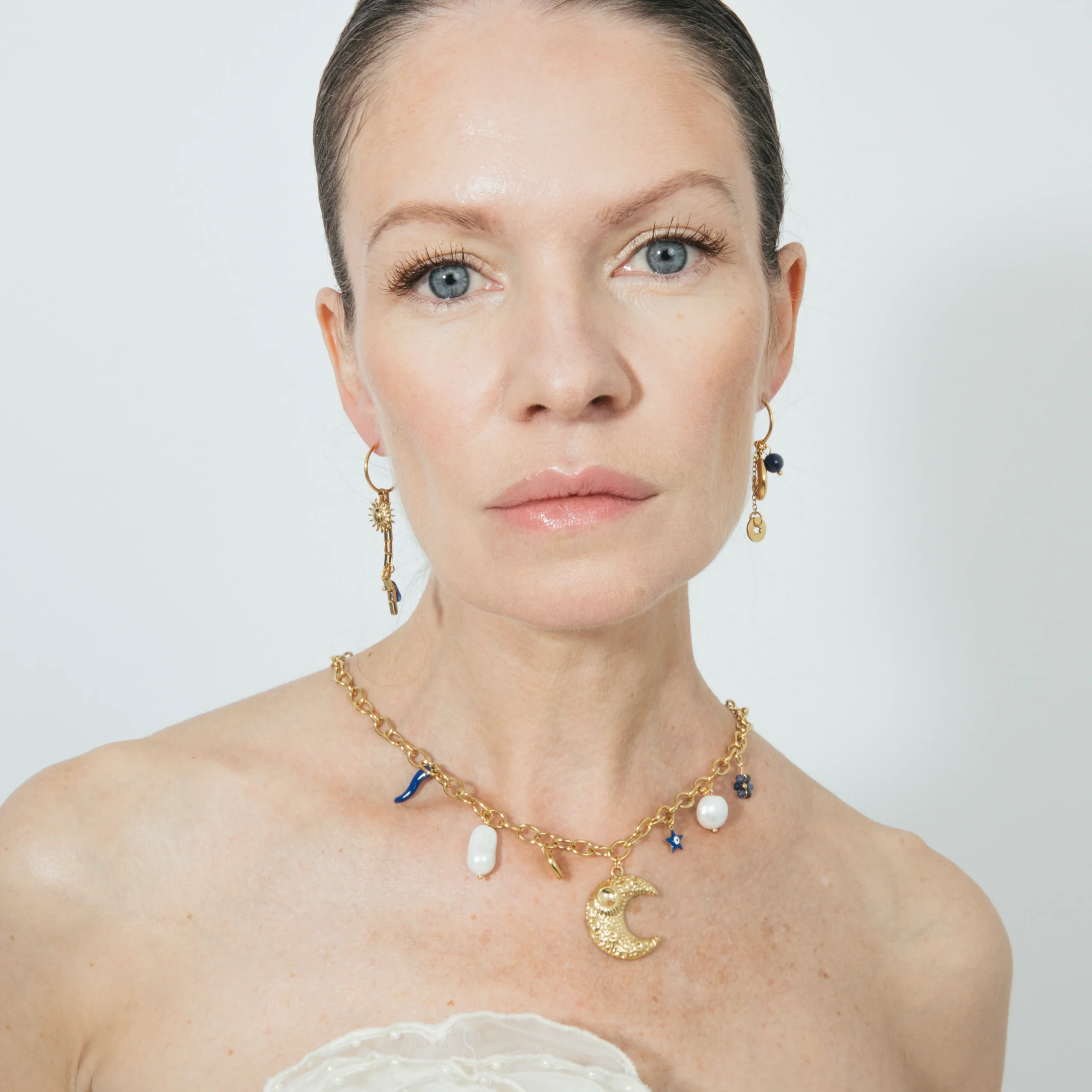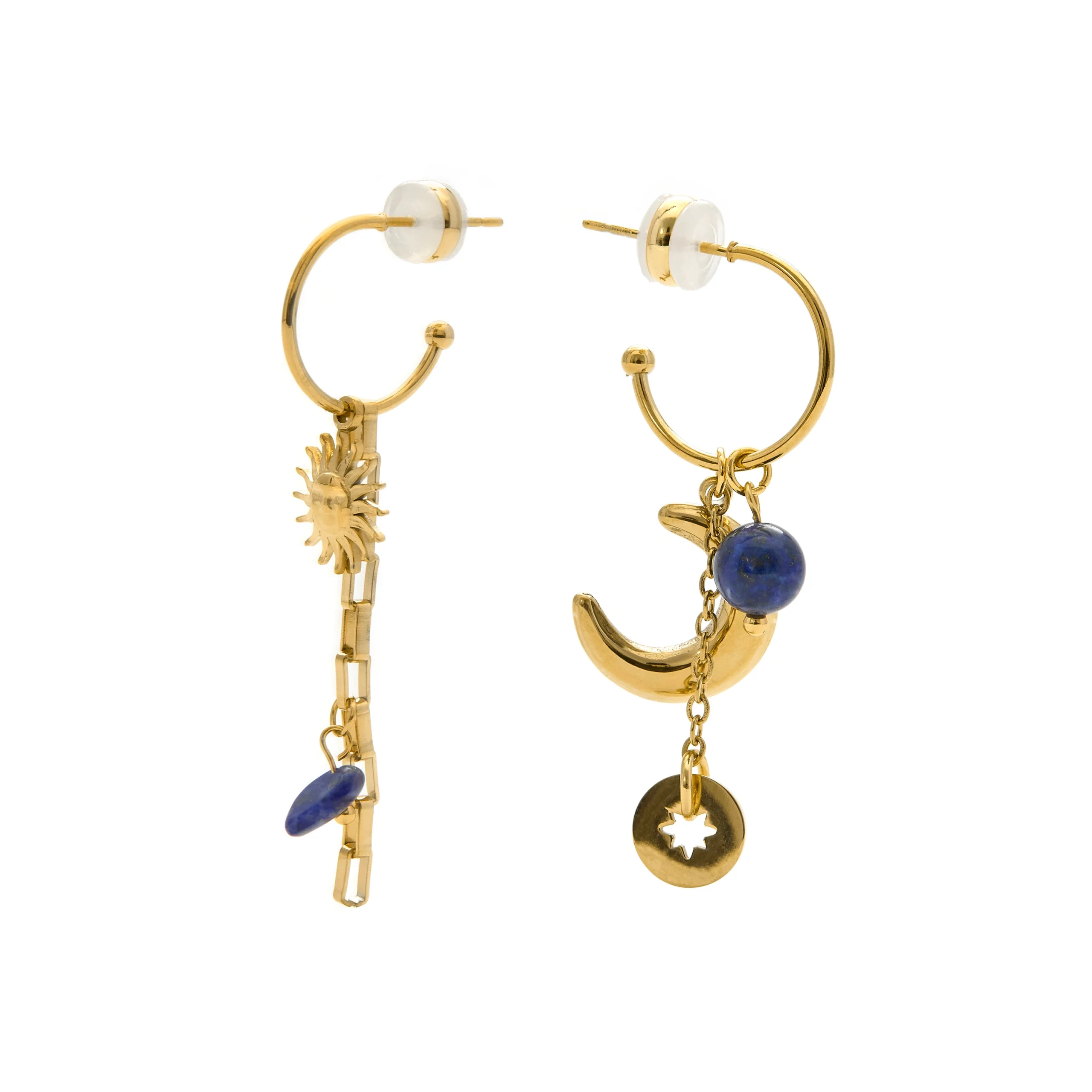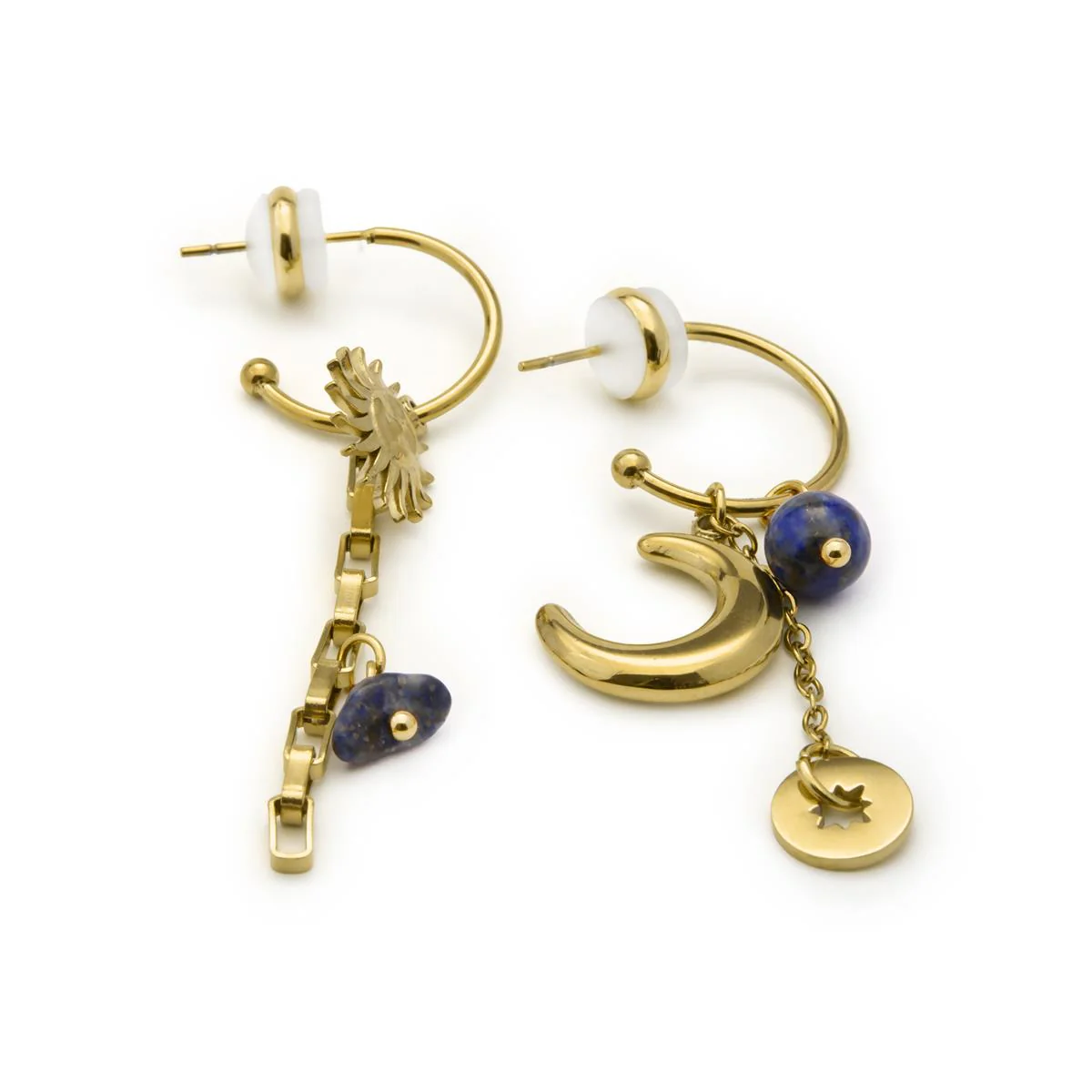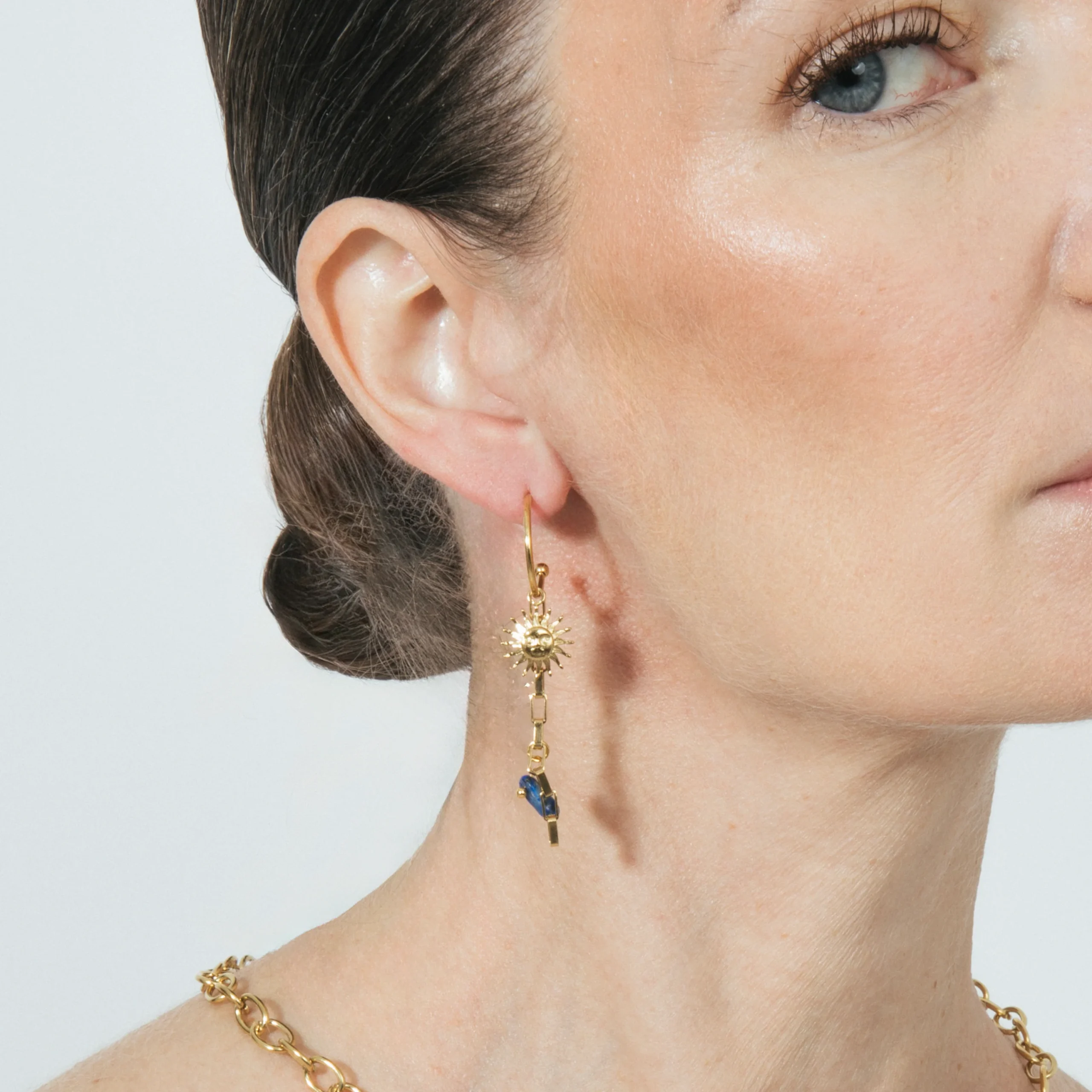 Pendientes Gud de Cristal Azul acabado en Oro Amarillo 18k