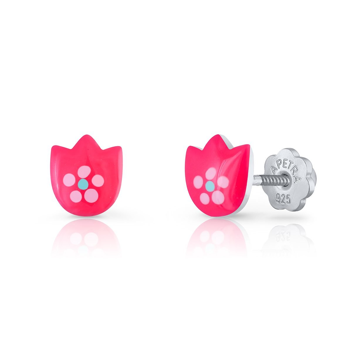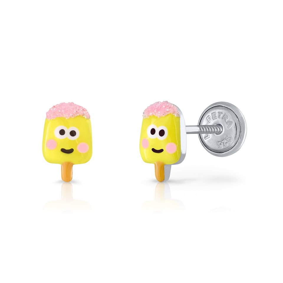 Pendiente en plata de ley helado con esmalte a mano en amarillo y detalles en rosa glitter