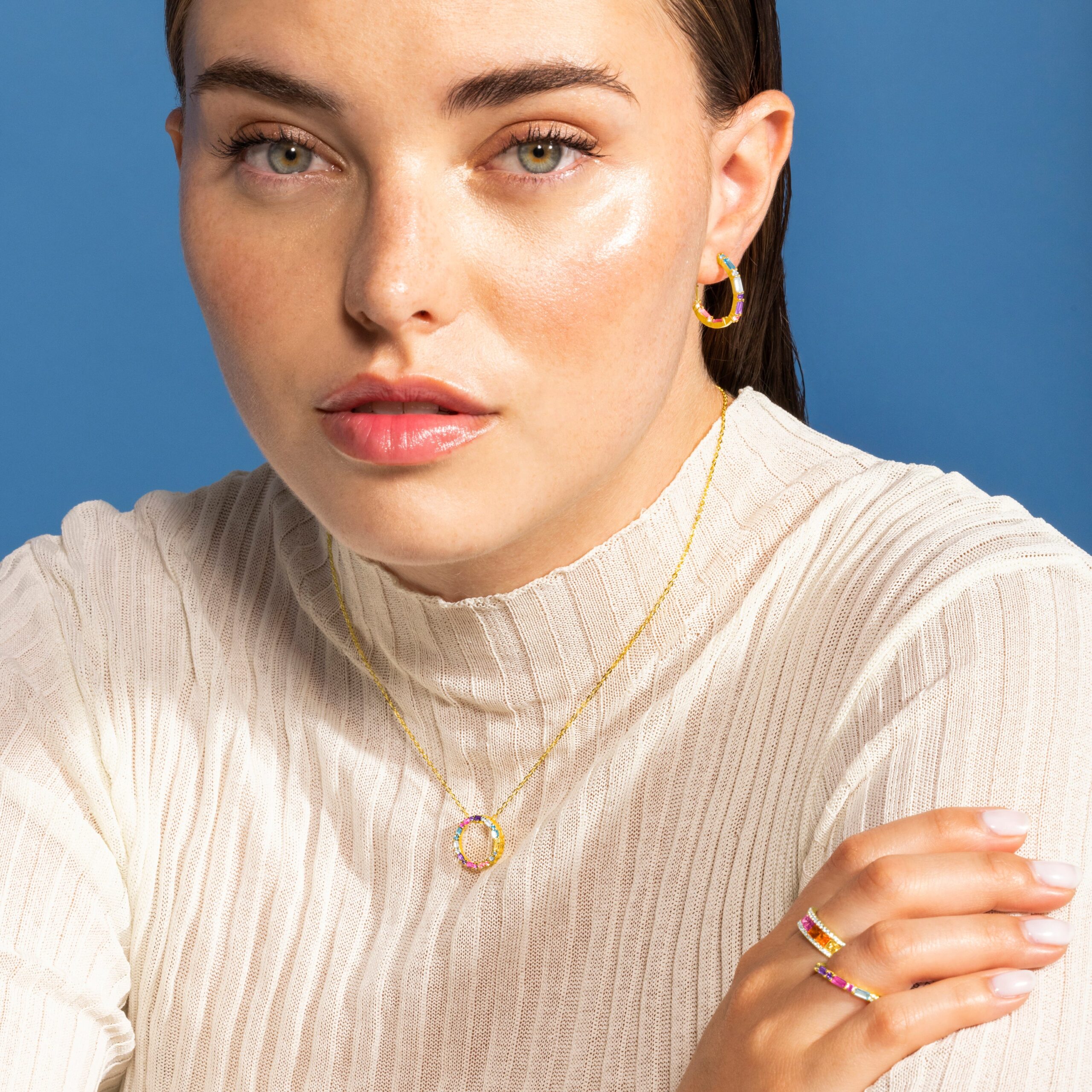 Pendientes Hinnar de Plata de Ley 925 y Circonita Multicolor acabado oro 18k. Trendy representa las tendencias clave en el mundo de la moda. Nuestra línea más espontanea, con un marcado espíritu moderno que concentra en joyas repletas de color entre las que destaca el uso de piedras naturales y diseños en forma de amuletos y talismanes