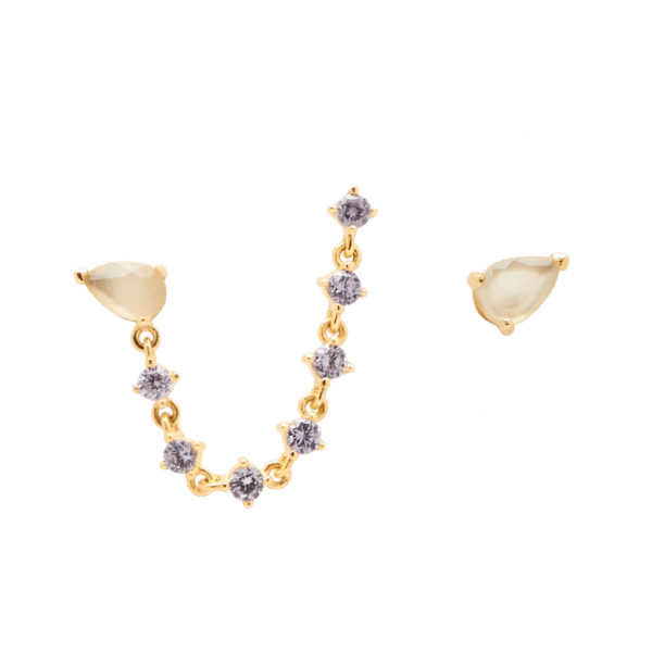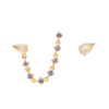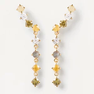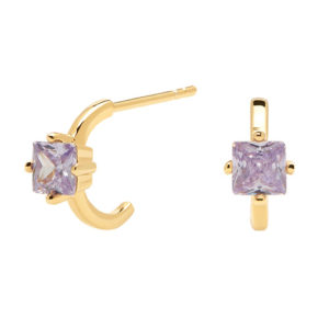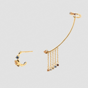 La singularidad de su diseño hace de los pendientes Joanne una pieza única. Combinando circonitas lavanda y cristal amarillo sobre Nácar, estos pendientes asimétricos están hechos para destacar. La pieza con ristra de piedras lavanda está diseñada para ser llevada en lóbulos perforados con varios agujeros. Hechos de Plata de Ley 925 bañada en Oro de 18k