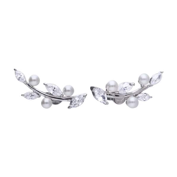Pendientes trepadores Diamonfire de plata de ley decorados con circonitas transparentes y perlas.