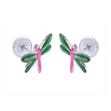 Pendiente en plata de ley con rosca y motivo esmaltado a mano