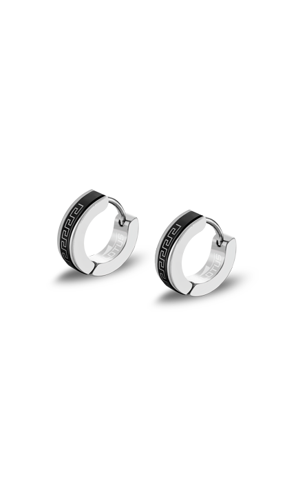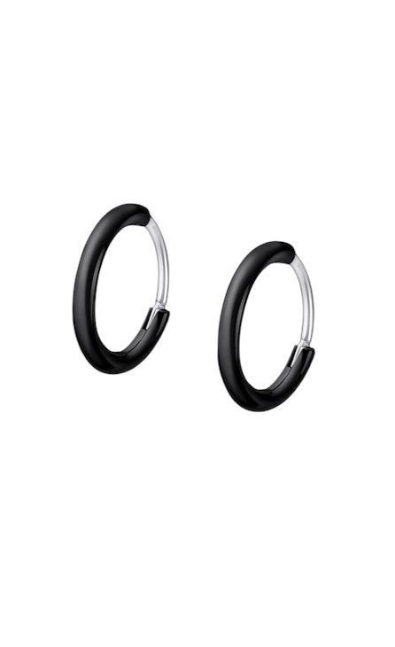 Pendientes lotus style men aro con esmalte negro y filigrana. Cierre de click
