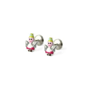 Pendiente en plata de ley con rosca y motivo esmaltado