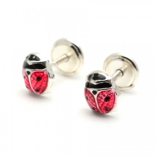 Pendiente en plata de ley con rosca y motivo esmaltado