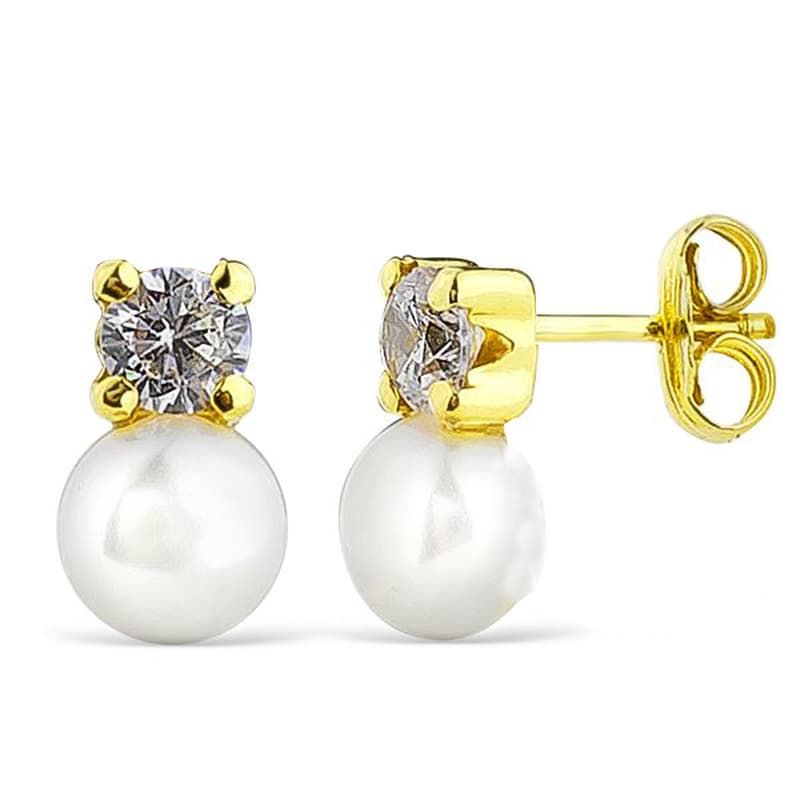 Pendientes Oro Amarillo Circonita y Perla de 7mm