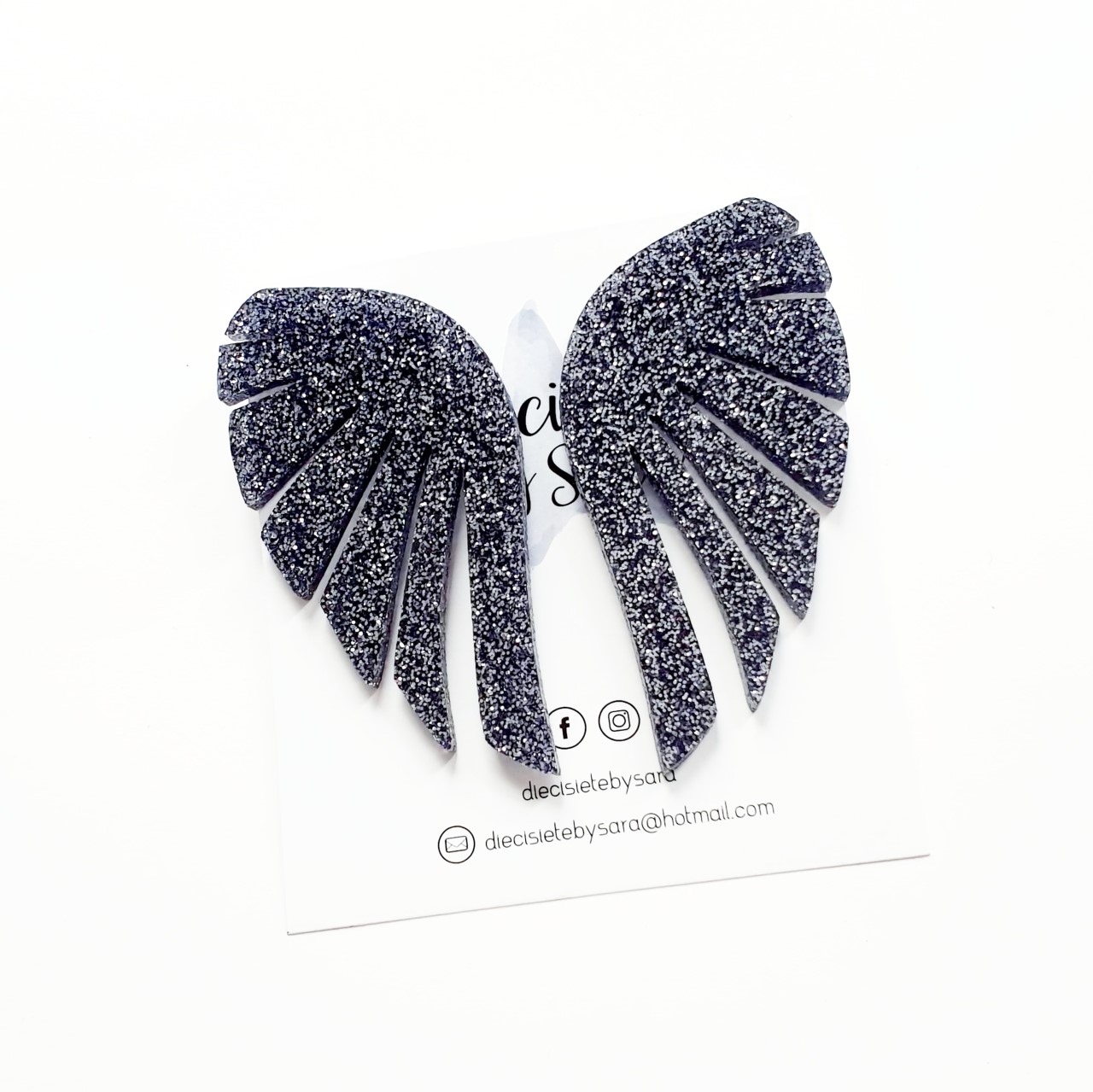 Pendientes Alas en color negro glitter