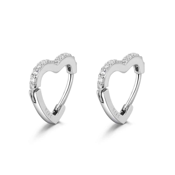 Pendientes Aro Plata con forma de corazón calado y c circonitas de 12mm