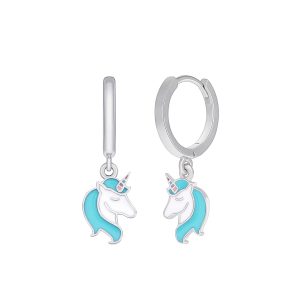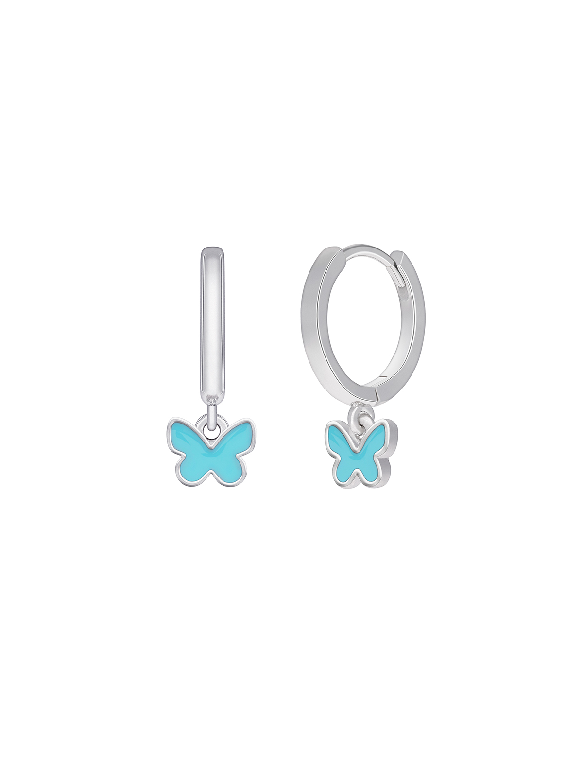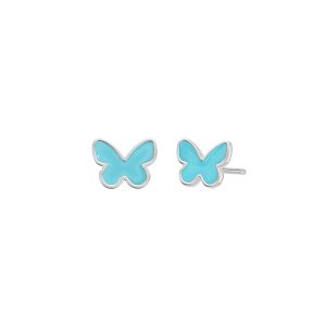Pendiente hoop mariposa. Plata de 1ª Ley rodiada. Esmalte turquesa. Cierre huggy. Colección girls.