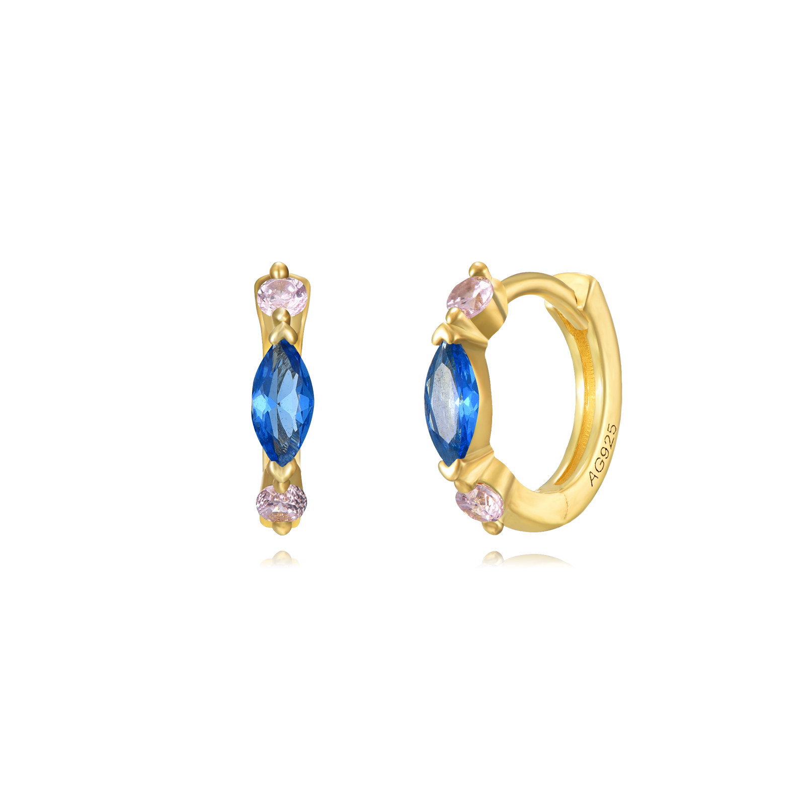 Pareja de pendientes aro de 11 milimetros con 3 circonitas una de ellas marquise