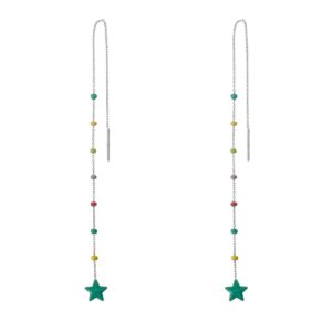Par de pendientes aros lisos con cadena y 3 circonitas en plata de ley