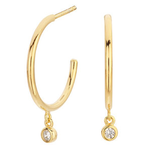 Pendientes Plata con Baño de Oro Barra Curvada, Cadena y circonita SEA-201-352-UU