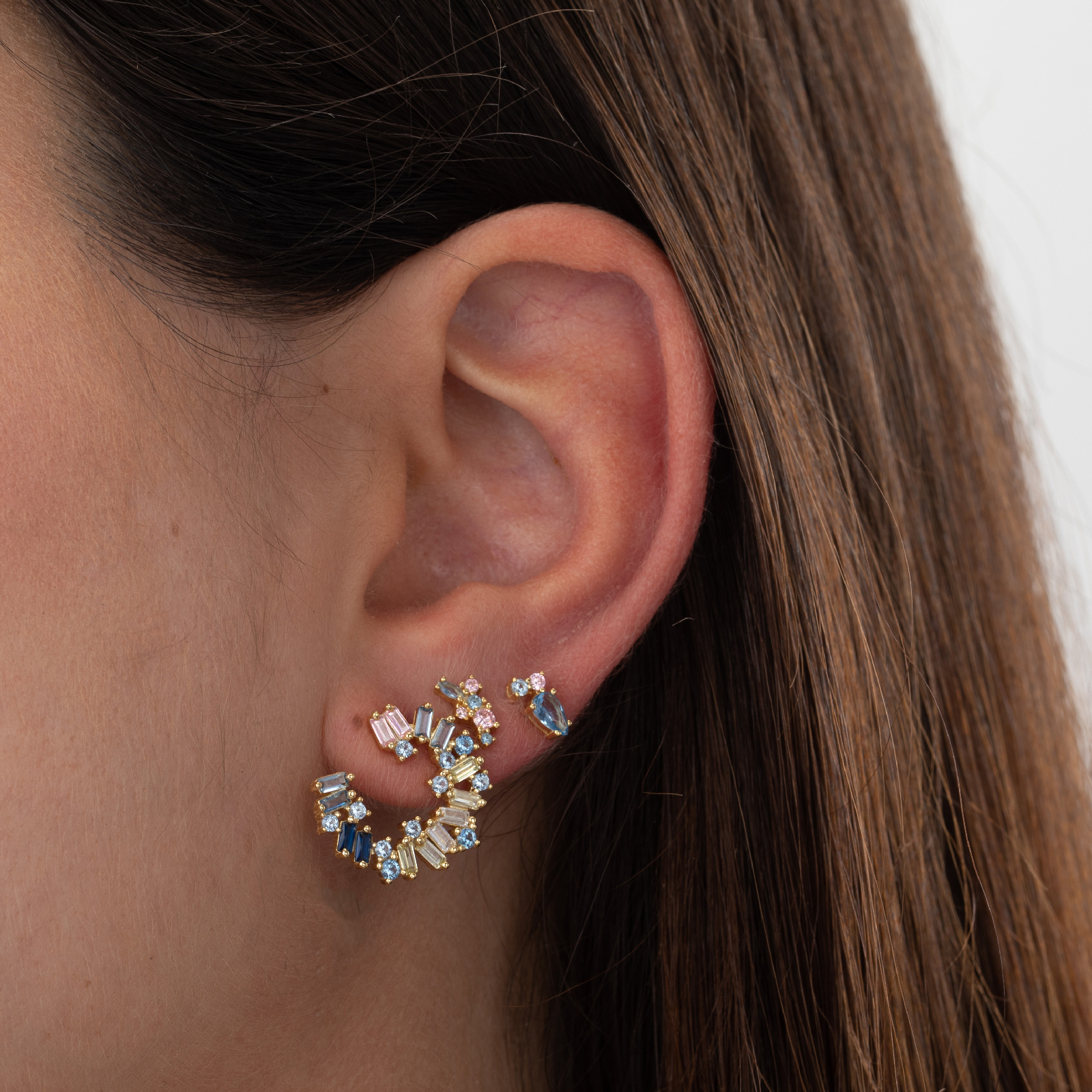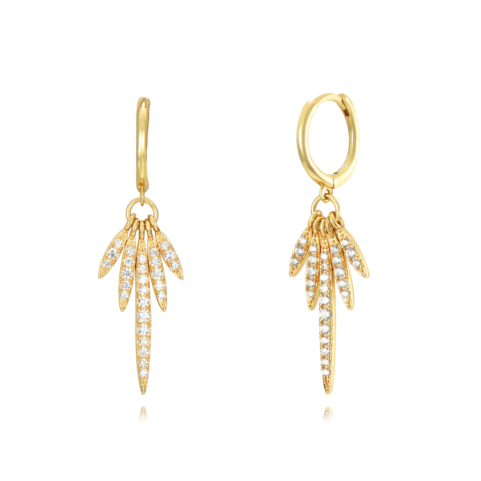 Par de pendientes en plata de ley con baño de oro de 18k aro y cinco piezas colgantes con circonitas