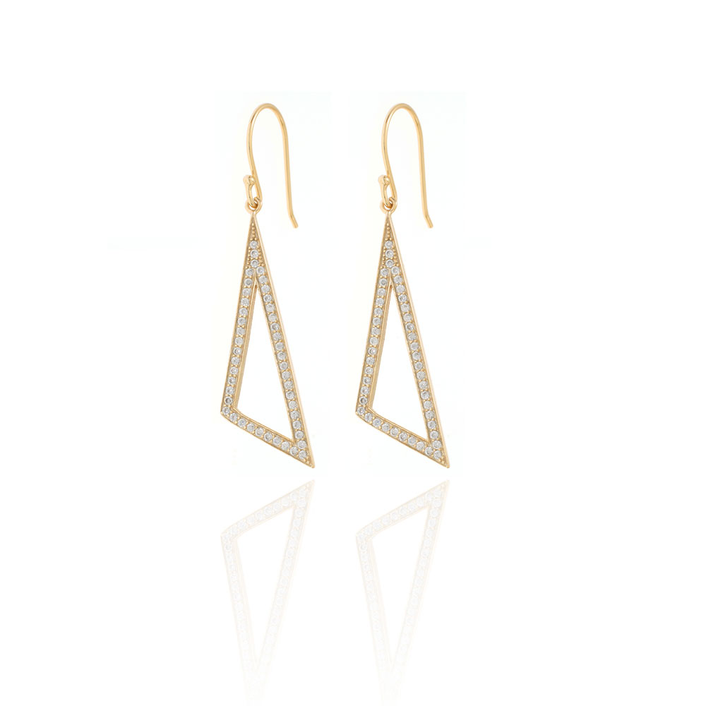 Par de pendientes en plata de ley gancho hippie y colgante triángulo de circonitas