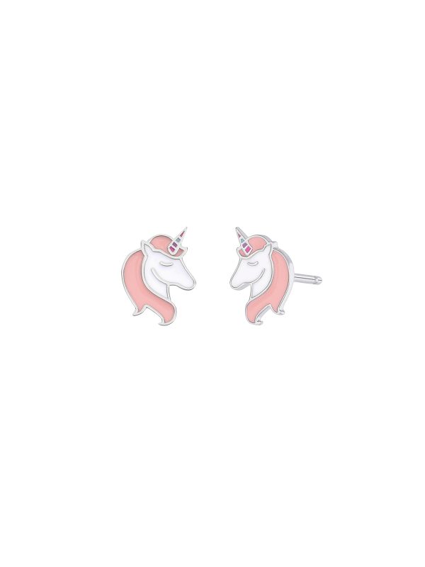 Pendiente unicornio. Plata de 1ª Ley rodiada. Esmalte rosa. Cierre presión. Colección girls.