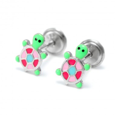 Pendiente en plata de ley con rosca y motivo esmaltado a mano
