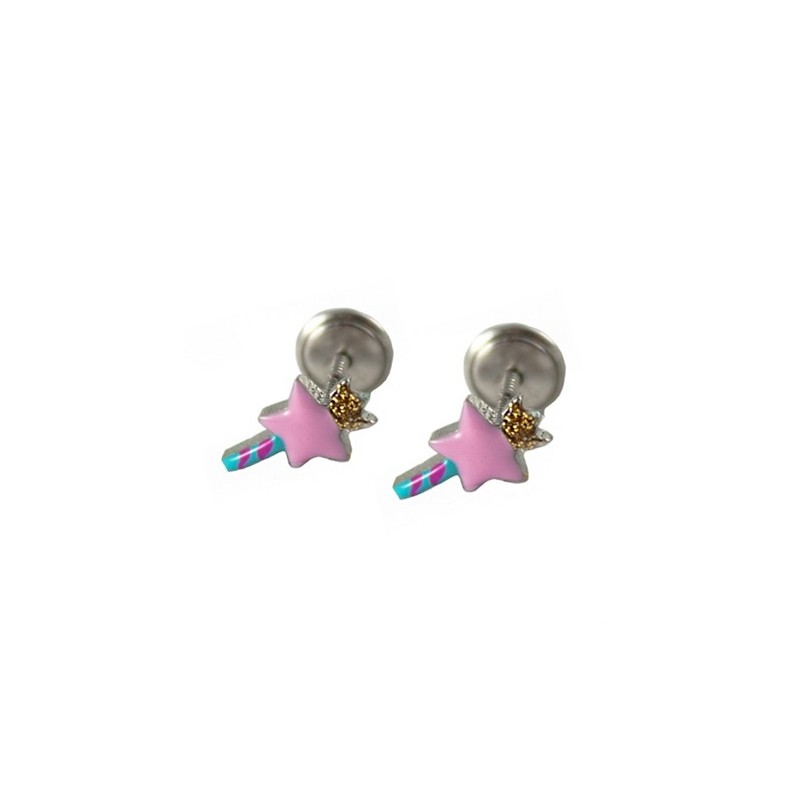 Pendiente en plata de ley con rosca y motivo esmaltado