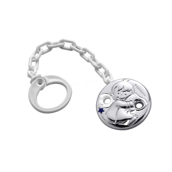 Pinza chupete Pedro Duran Dulces sueños en plata de ley con duralato. Tratamiento especial para que la pieza se mantenga siempre brillante sin necesidad de limpiarla
