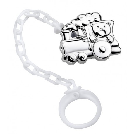 Pinza Para Chupete Osito en tren. Realizada por Pedro Durán en Plata Firmada 925