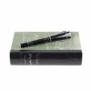 El plumín artesanal de oro de 18 K rodiado está decorado con el grabado del escudo imperial de Lilliput, que camina entre las piernas de Gulliver. Mecanismo de émbolo. Plumín F.