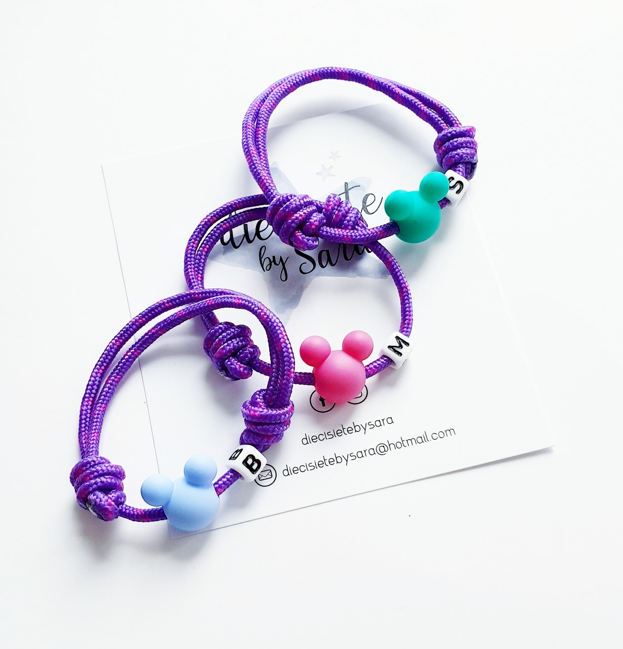 Pulsera ajustable con cordón motivo Mickey en silicona e inicial