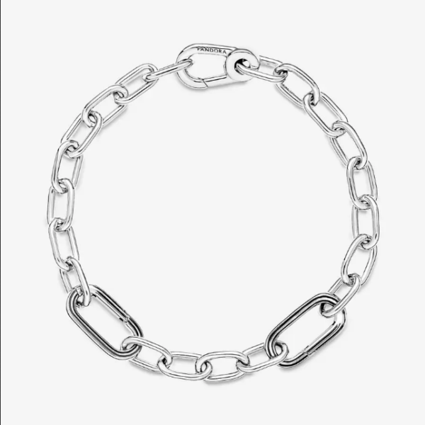 Crea y combina tu pulsera favorita como nunca lo habías hecho antes. Nueva Pulsera de Cadena de Eslabones con Cierre de Mosquetón Pandora ME en plata de primera ley,