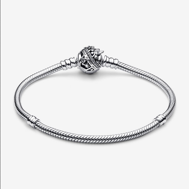Haz que cada día sea mágico con nuestra Pulsera Cadena de Serpiente con Cierre Campanilla de Disney de Pandora Moments. El cierre redondo de filigrana presenta a Campanilla sosteniendo una cinta de brillante pavé, así como el mensaje grabado «I believe in pixie dust» (Creo en los polvos de hadas). Lleva esta pulsera en plata de primera ley embellecida con charms de Disney x Pandora para revivir tus historias favoritas de Disney vayas donde vayas.