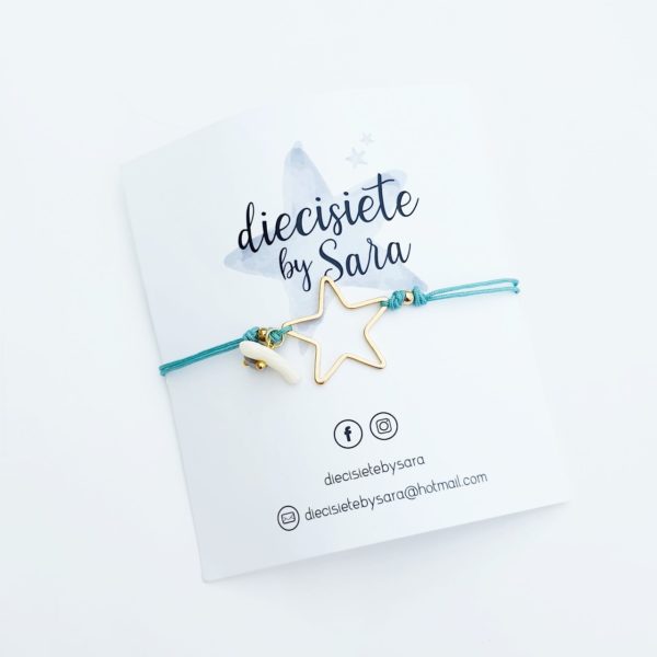 Pulsera ajustable en hilo azulcon estrella dorada
