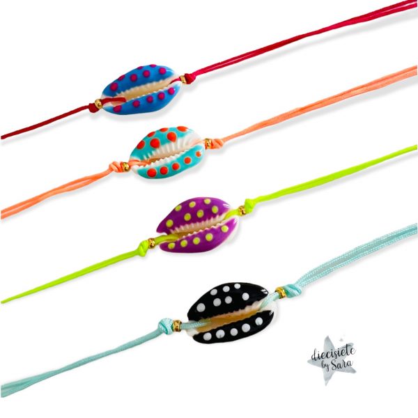 Pulsera Hilo de color y concha con esmalte