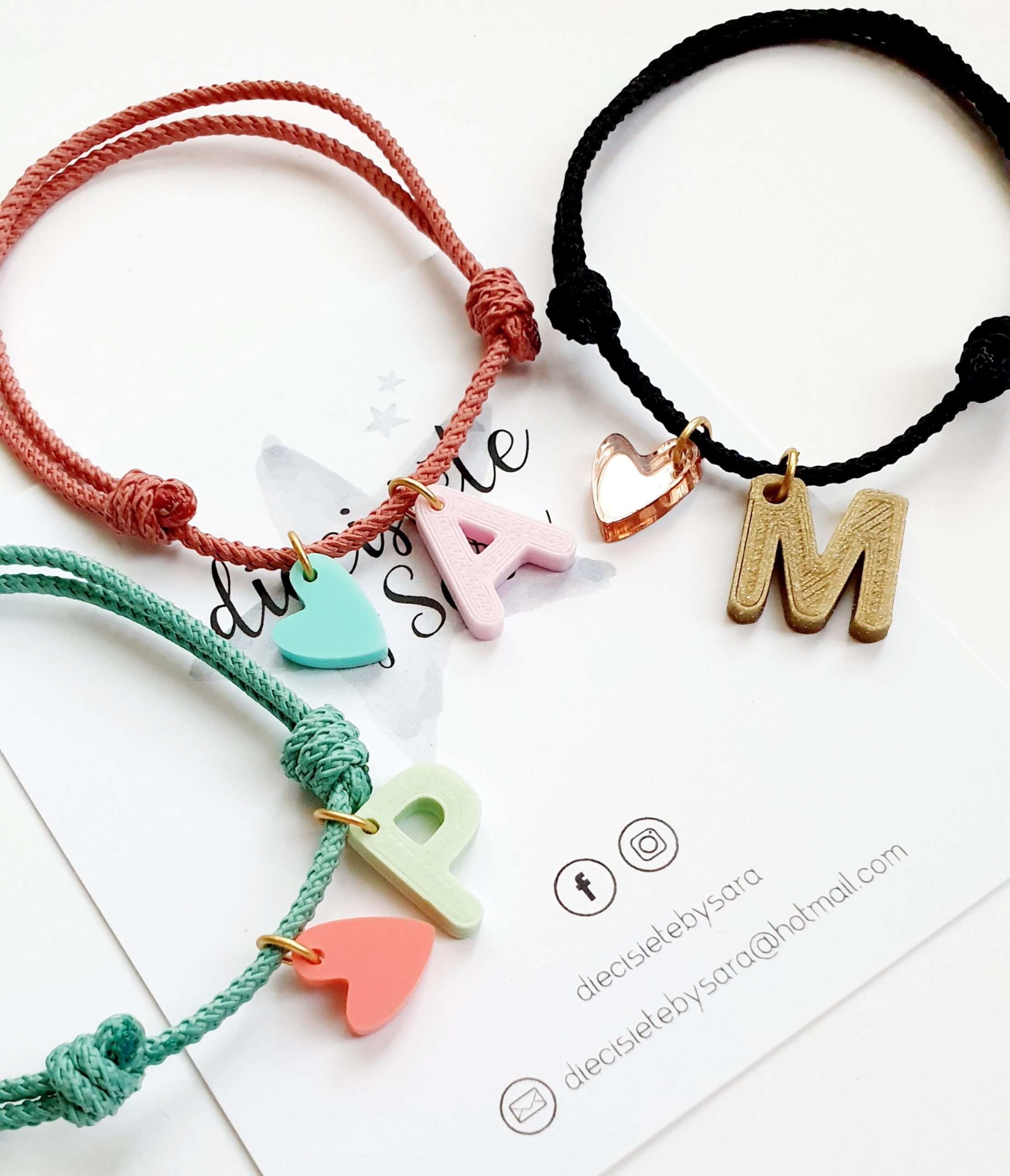 Pulsera cordón de hilo corredizo con corazón e inicial