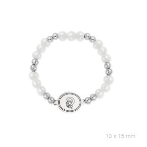 Pulsera Elastica Perlas en plata de Ley Medalla Virgen