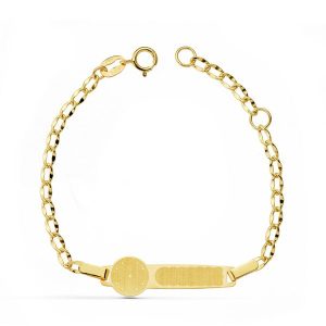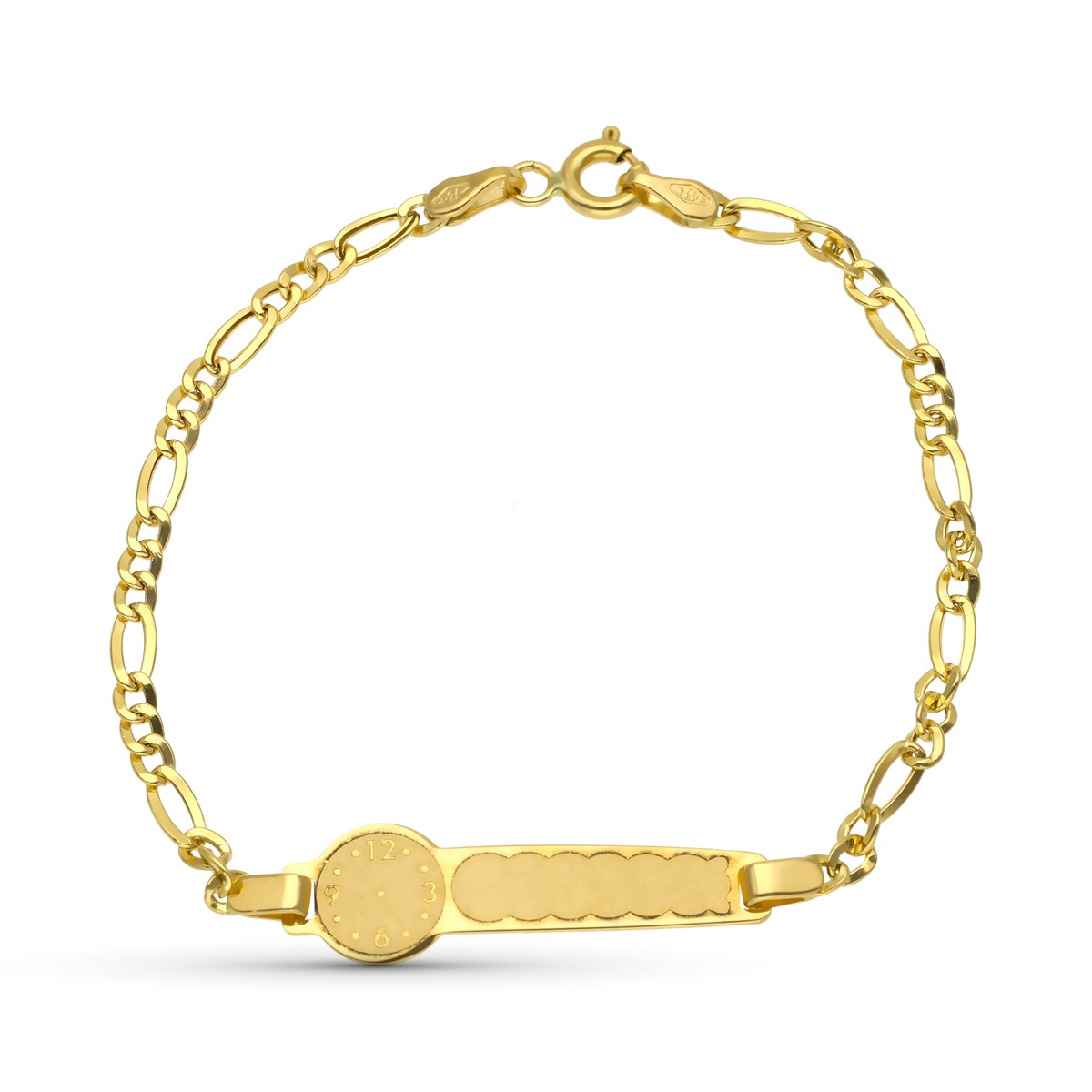 Pulsera en oro de 18k con eslabones y placa con reloj para grabado