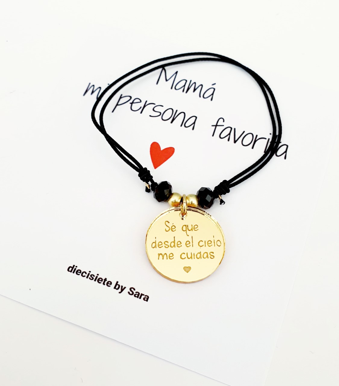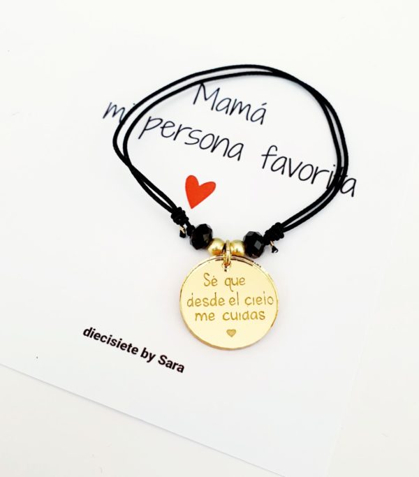 Pulsera hilo y chapa en Dorado con grabado «Se que desde el cielo me cuidas»