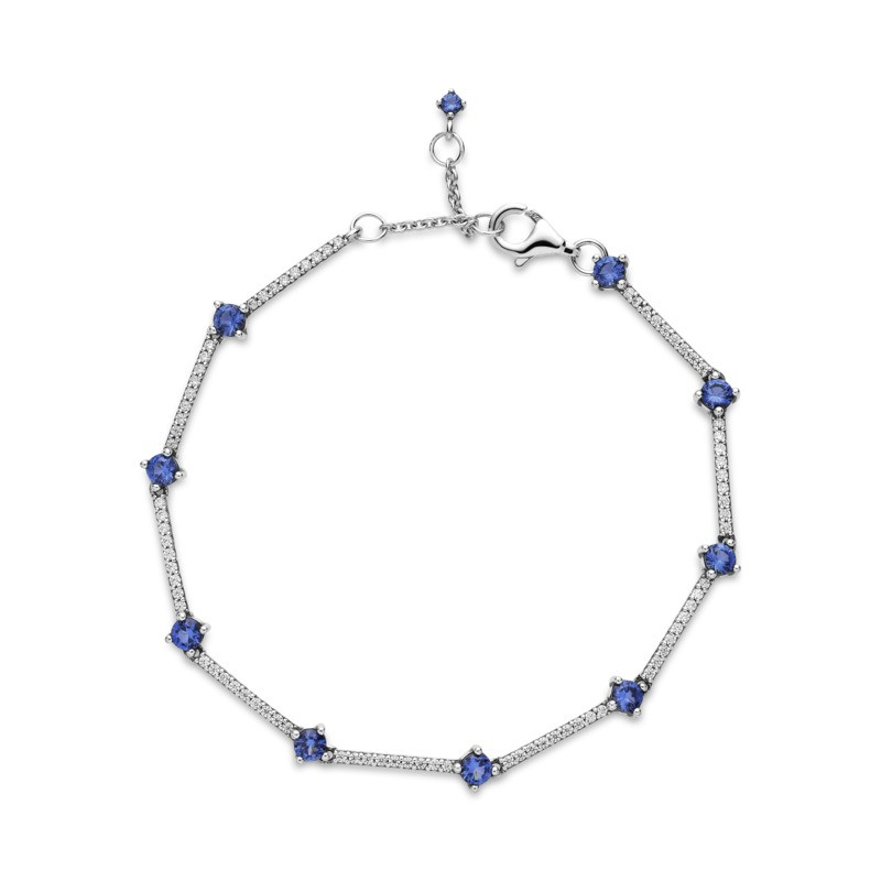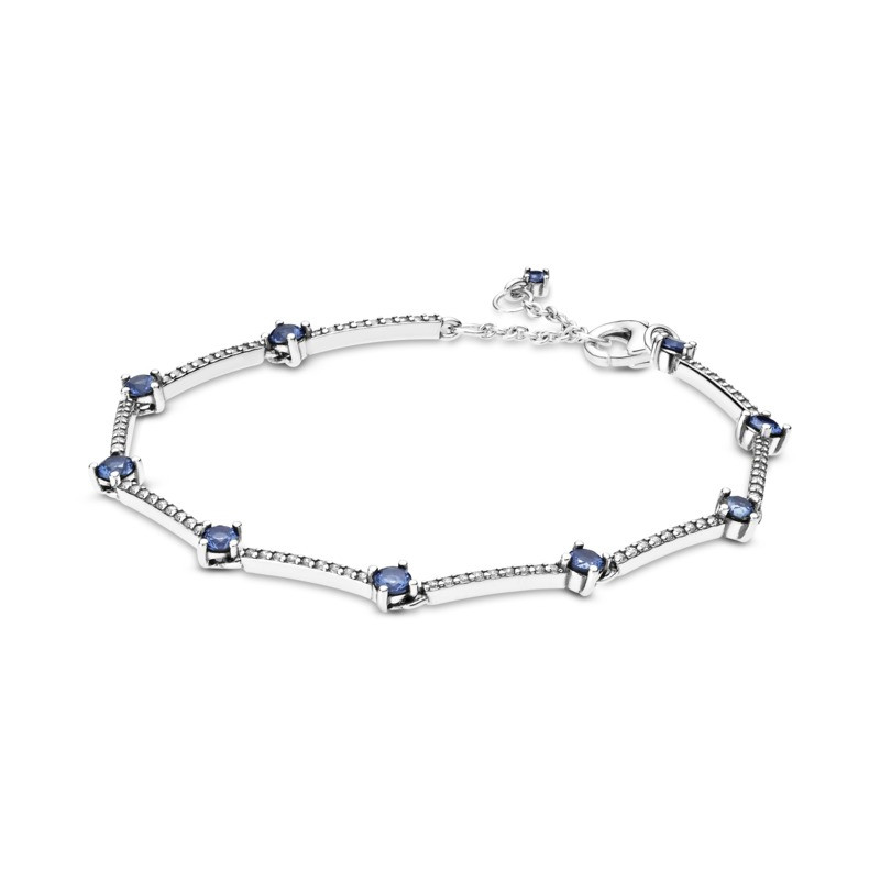 pulsera en plata de ley barras Brillantes con circonitas cubicas transparentes y azules