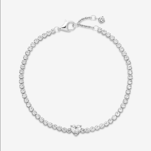 Acabada a mano en plata de primera ley, esta pulsera se presenta con un gran cristal ovalado de color azul con talla princesa y engastes en punta enmarcados por una fila de pavé de circonitas cúbicas transparentes. La pulsera incluye un cierre de mosquetón que cierra de forma segura y se puede ajustar a tres longitudes. Llévala sola o combínala con otras joyas de Pandora Timeless para crear un look atemporal.
