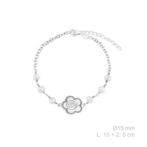 Pulsera Elastica Perlas en plata de Ley Medalla Virgen
