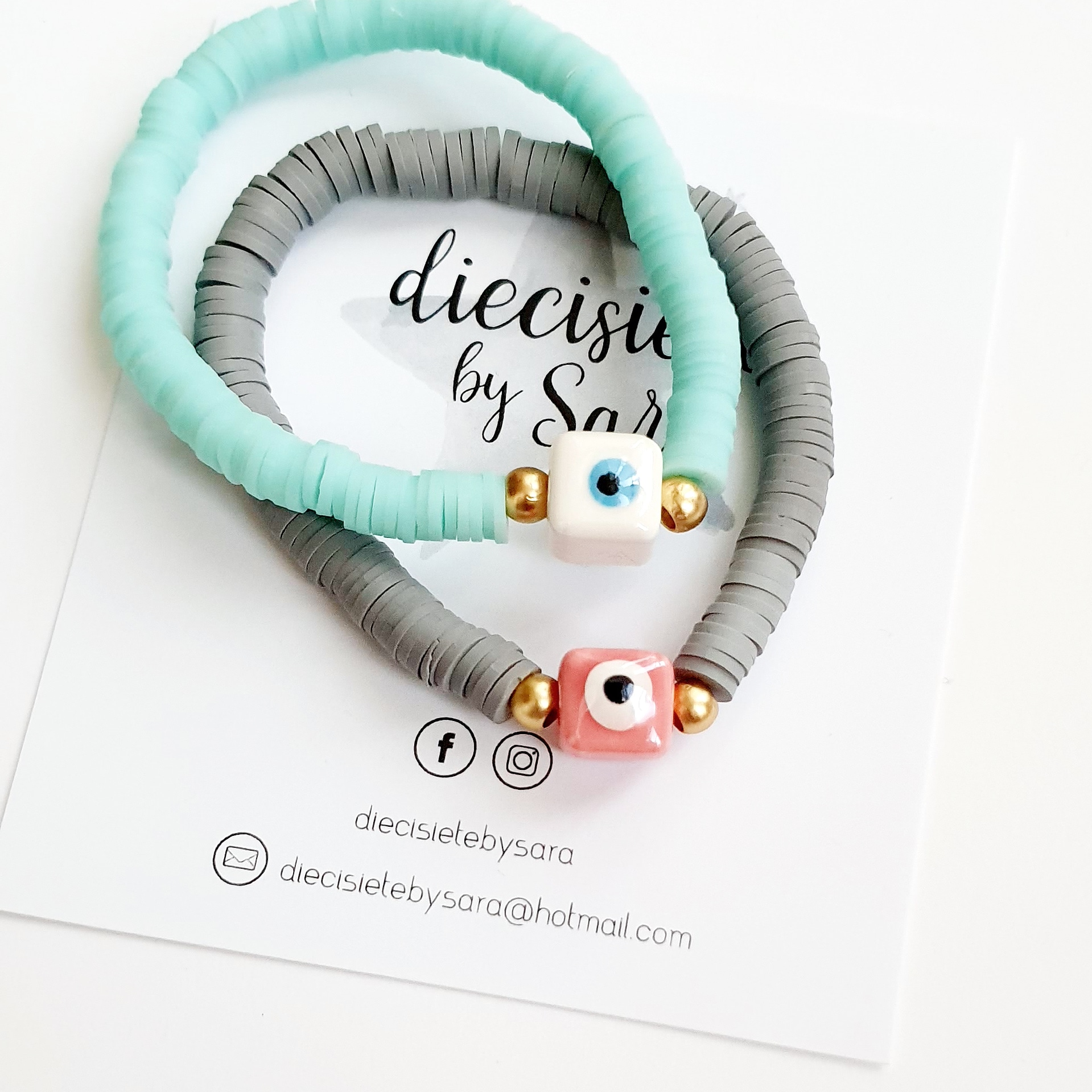 Pulsera discos y pieza de ceramica ojo