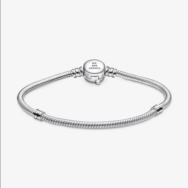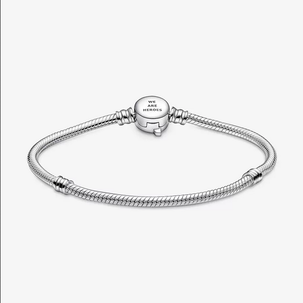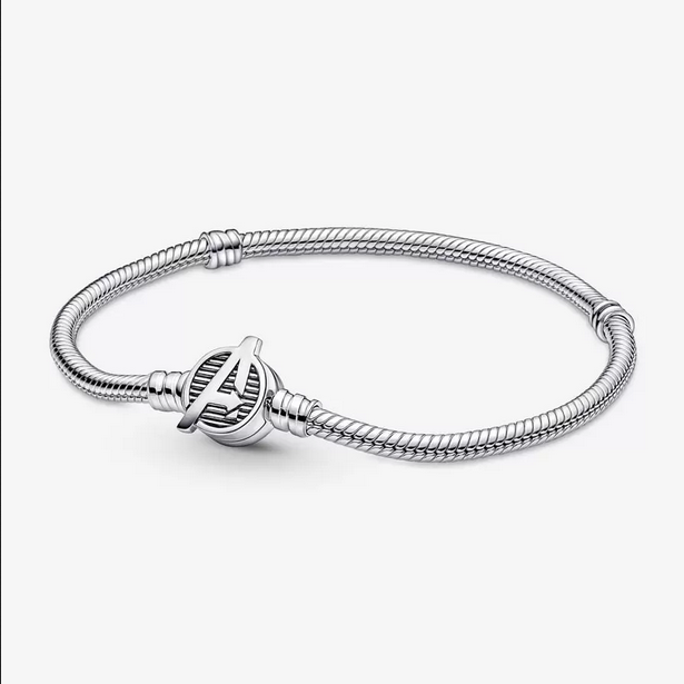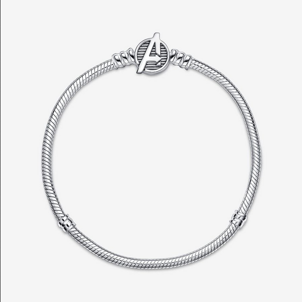 Pulsera Pandora Moments Cierre Logo Los Vengadores de Marvel. Acabada a mano en plata de primera ley, esta pulsera de charms tiene un cierre en el que se ha grabado el logo de los Vengadores de Marvel. Es la forma perfecta de llevar a tus personajes favoritos siempre contigo y contar al mundo tu amor por el universo de Marvel. En esta pulsera podrás llevar hasta 18 charms. ¡Tú decides como crearla!