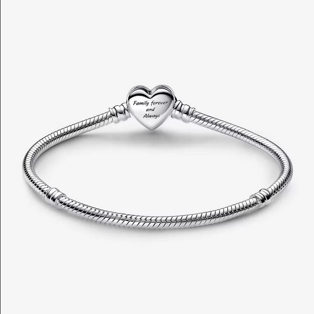 Representando el amor eterno que une a la familia, la Pulsera Pandora Moments en plata de ley Cadena de Serpiente con Cierre Corazón Infinito Brillante, es un regalo lleno de significado para las personas que más te importan. El cierre de corazón calado tiene gemas a lo largo del borde y un símbolo asimétrico de infinito que se entrelaza alrededor del corazón. El reverso del cierre está grabado con la inscripción «Family forever and Always» (Familia por siempre y para siempre). La pulsera tiene dos roscas que la dividen en tres partes. Adórnala con hasta 16-18 de tus charms o charms colgantes favoritos para simbolizar a tus seres queridos, o regálasela a alguien cercano a tu corazón.