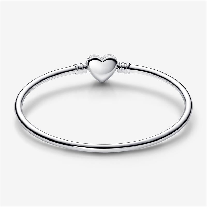 Pulsera Pandora Moments para mujer Corazón y Mariposa fabricada en plata de primera ley de diseño rígido con cierre en forma de corazón con una mariposa formada por una circonita cúbica brillante.