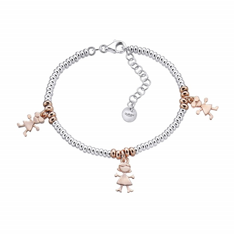 Pulsera en plata de ley y plata de ley con baño de oro rosa y motivo Mamá y 2 niñas